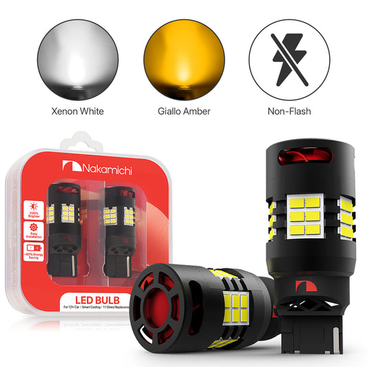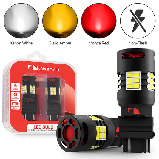 Nakamichi T20 7440 7441 7444 (W21W) Car LED Bulb 30-SMD 3020 Chip with Canbus Error-Free 12,000 RPM Fan for Brake Turn Signal Indicator Reverse Backup Tail Light (30 LEDs, Pack of 2)