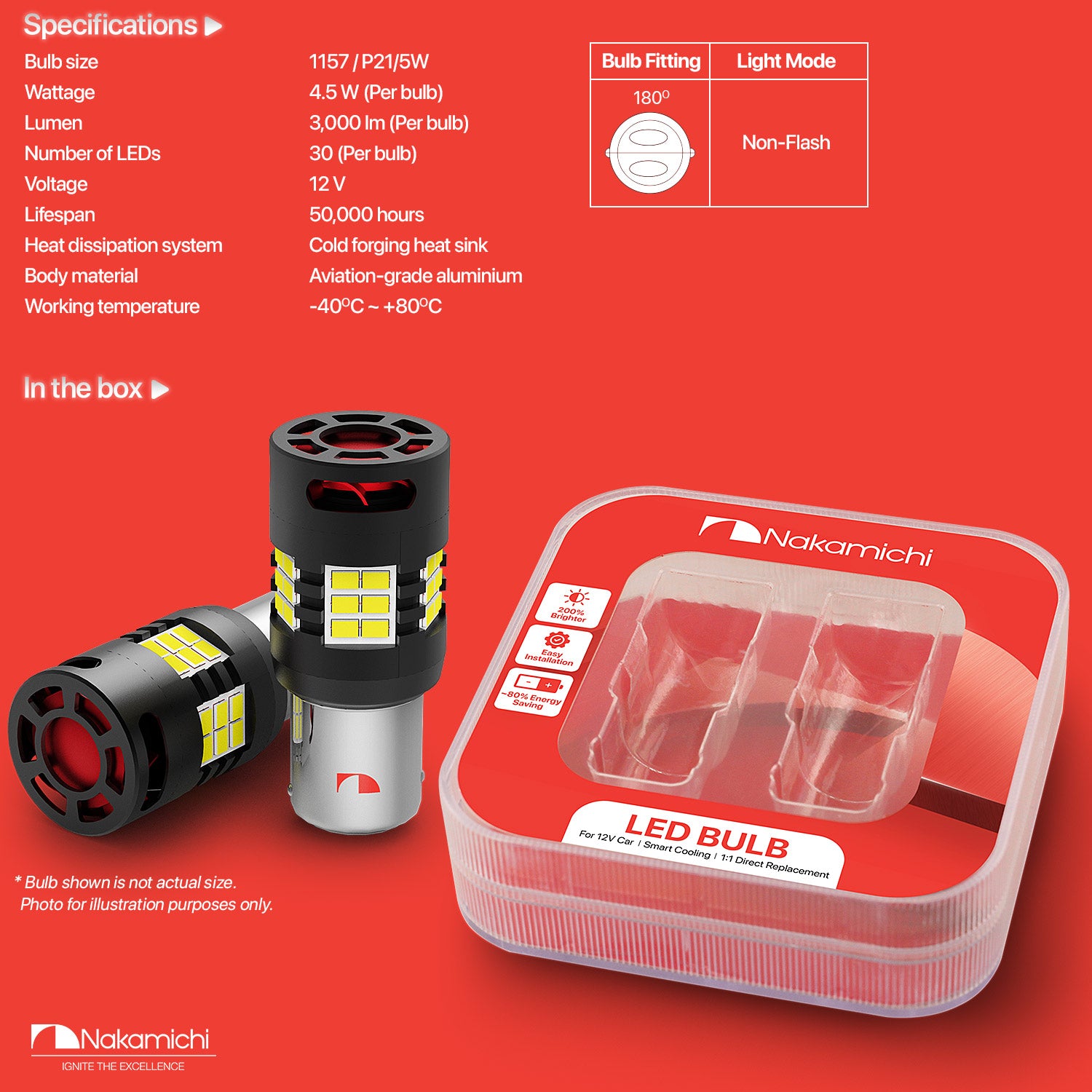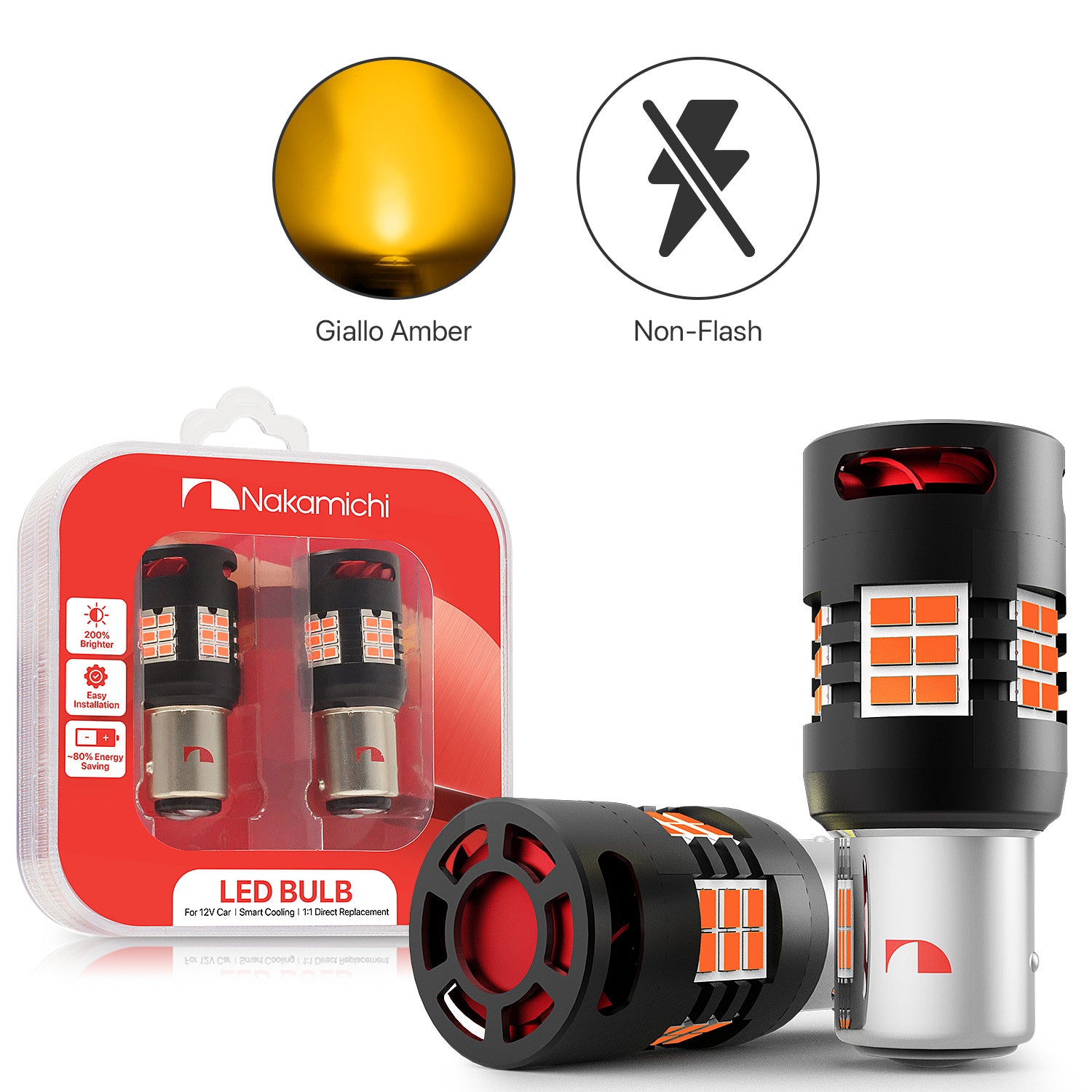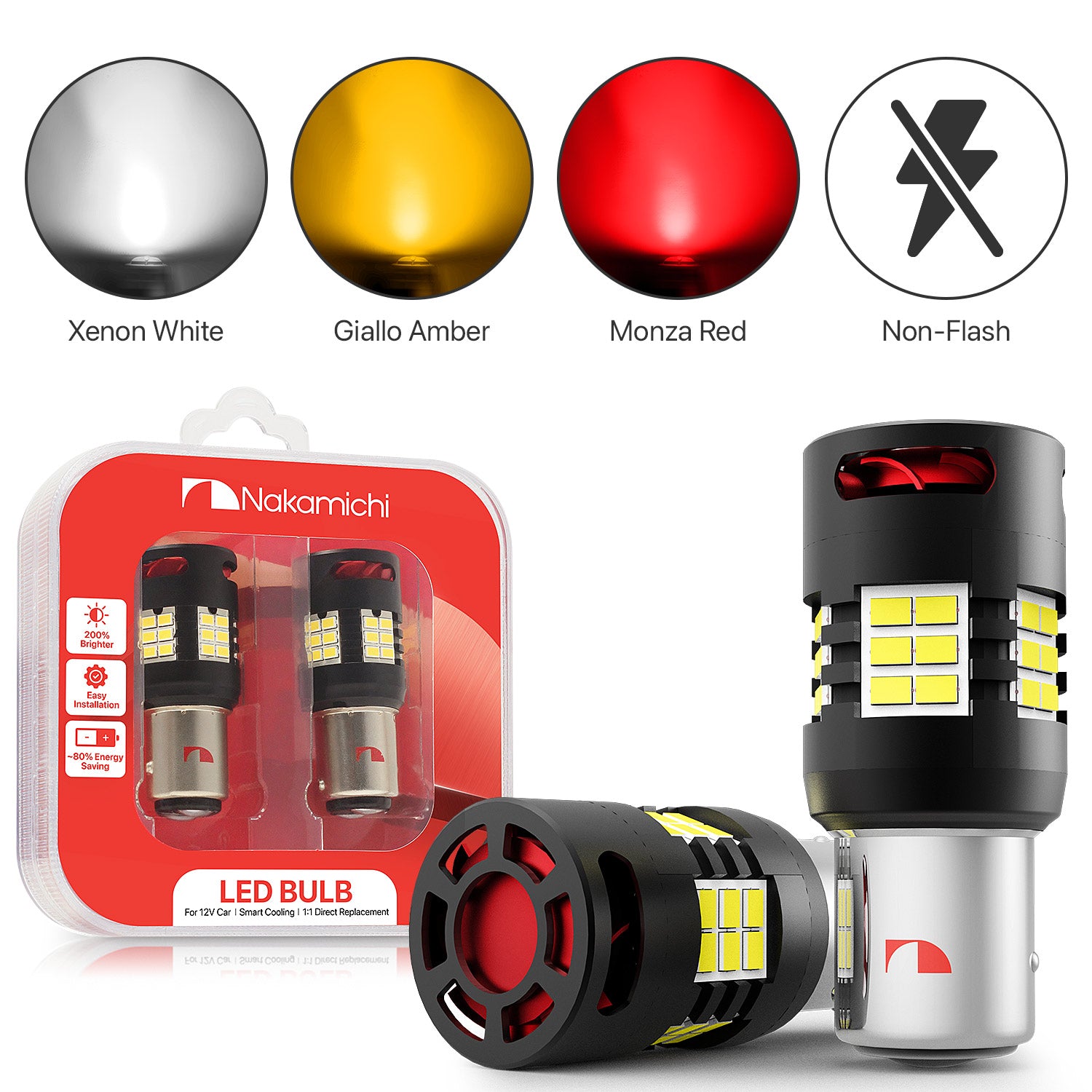 ✅ Achieve 200% more illumination than halogen: Experience a remarkable luminosity of up to 3,000 lumens and 4.5W per bulb with Nakamichi's enhanced 1157 (P21/5W, BAY15D, 7528 — with offset pins of different heights) LED bulbs. Equipped with 30 high-performance SMD chips per bulb, they generate a brilliant, vivid light that pierces through darkness and bad weather. These bulbs ensure your light indicators are instantly visible to other drivers, enhancing safety in all conditions. Also, with instant start-up, they achieve full brightness without any delay and looks cool indeed.